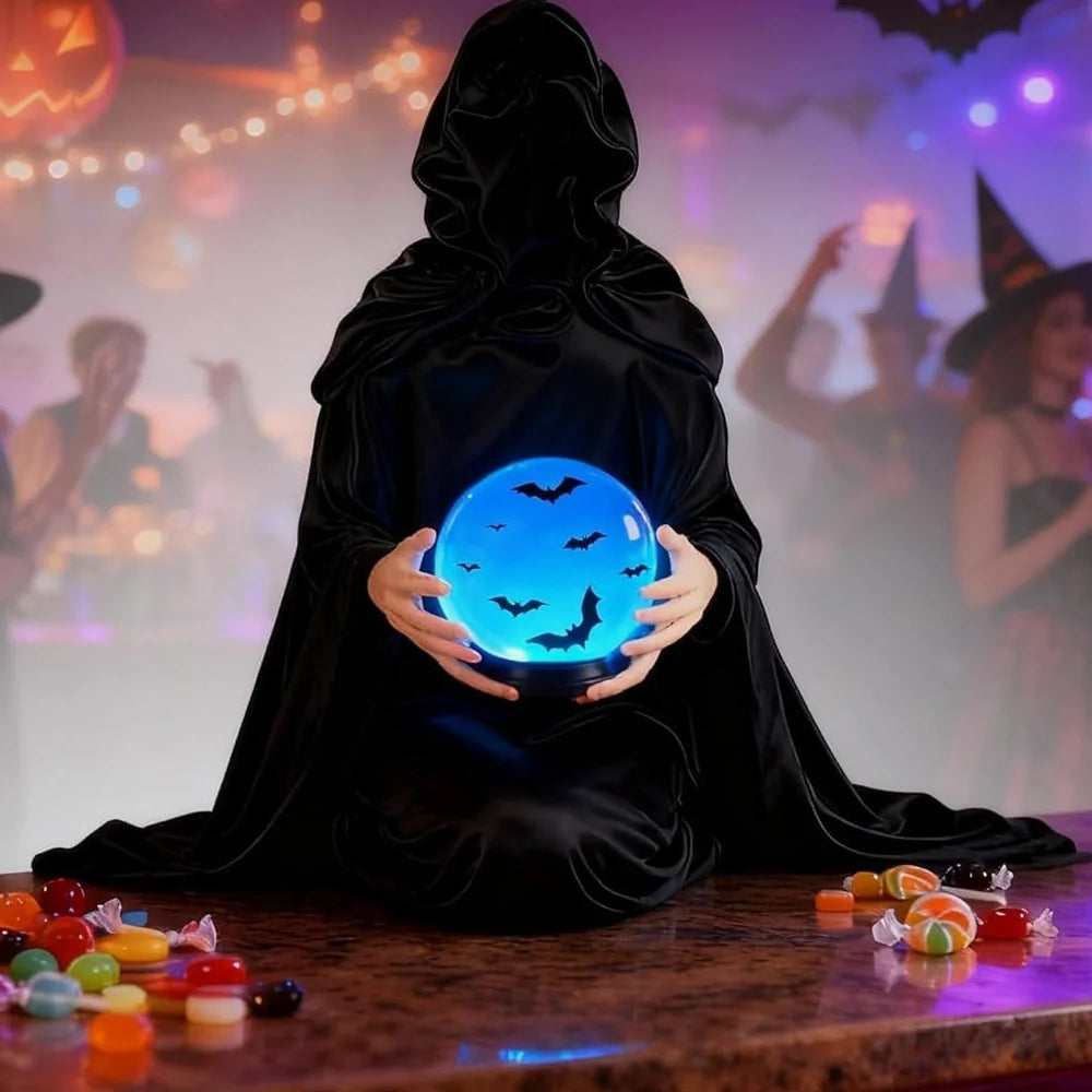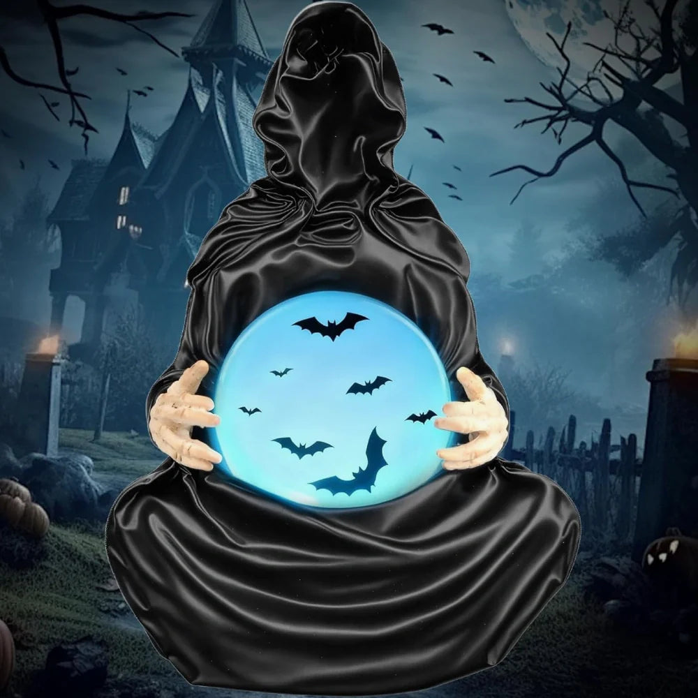 This Halloween snow globe is what happens when the Grim Reaper decides to get festive. Inside his hands, a glowing crystal ball filled with swirling bats and shimmering glitter lights up like a spooky disco for the undead. Flip it on, and suddenly your living room looks like the afterlife’s hottest nightclub — minus the cover charge. The craftsmanship is insane, from the folds of his cloak to the eerie glow that makes your guests wonder if you accidentally summoned something (you didn’t… probably).