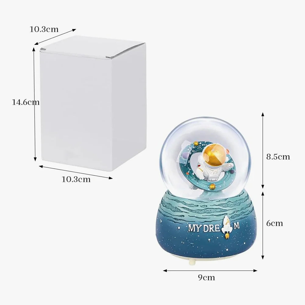 This crystal ball astronaut snow globe brings together art, light, and a touch of magic. Hand-painted with care, it creates a relaxing, almost hypnotic atmosphere when the melody plays and the lights fade between colours. Great for dreamers, stargazers, or anyone who secretly still wants to be an astronaut — no spacesuit required !